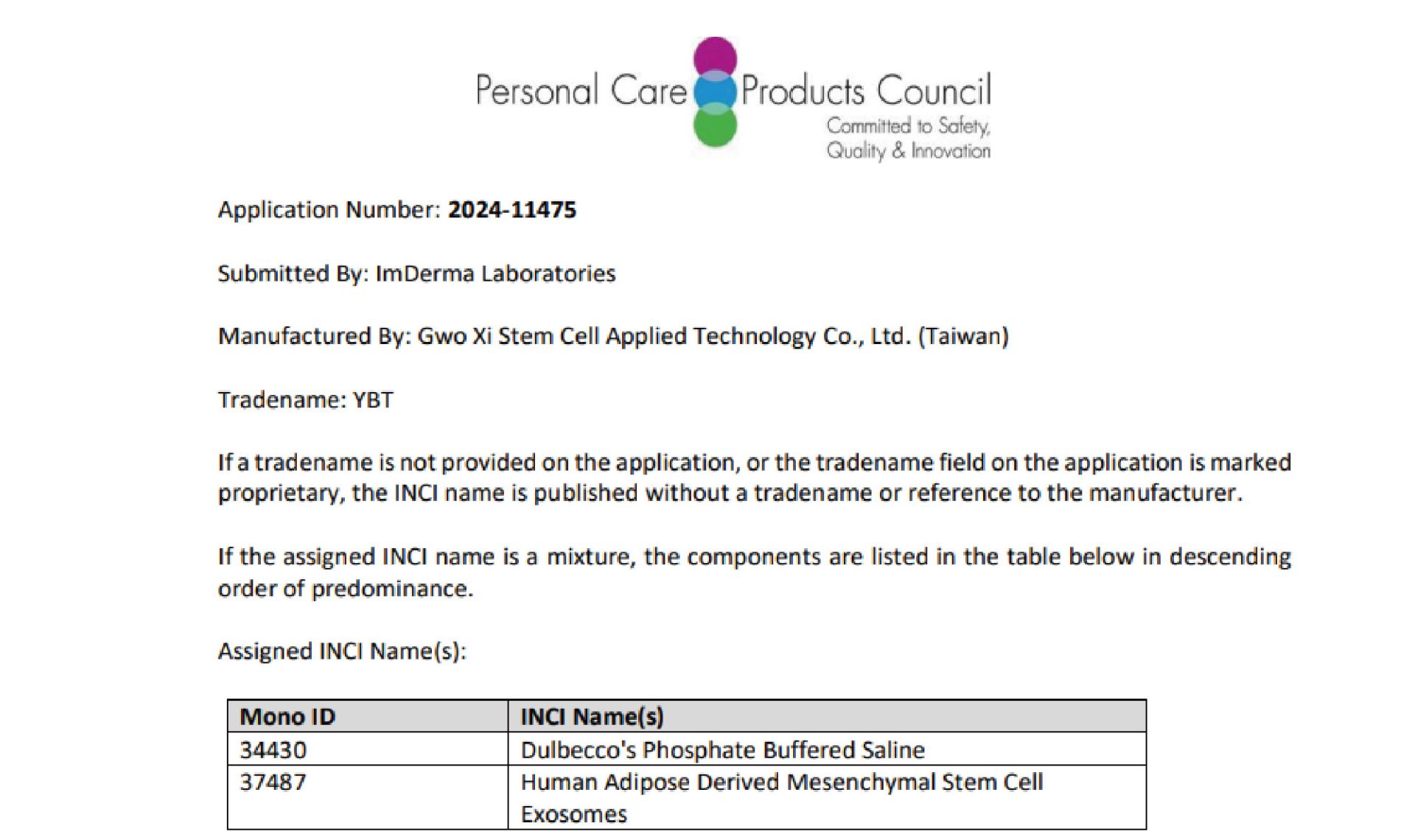 Gwo Xi Stem Cell (TPEx: 6704) has been granted an International Nomenclature Cosmetic Ingredient (INCI) name, marking a significant milestone for Taiwan’s exosome industry. The company successfully registered its Human Adipose-Derived Mesenchymal Stem Cell Exosomes (Dulbecco’s Phosphate Buffered Saline; Human Adipose Derived Mesenchymal Stem Cell Exosomes) in the International Cosmetic Ingredient Dictionary and Handbook of the Personal Care Products Council (PCPC). Gwo Xi Stem Cell is the first company in Taiwan to be granted INCI name for adipose-derived stem cell exosomes, setting a benchmark for the exosome industry both domestically and internationally.